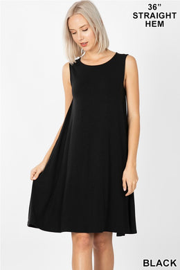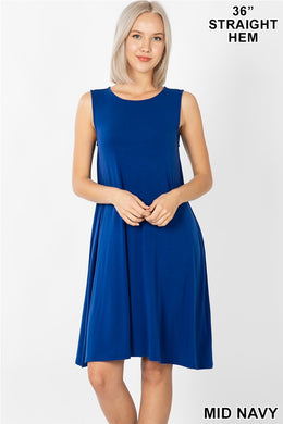 Sleeveless Flared Dress With Side Pockets (Mid Navy)